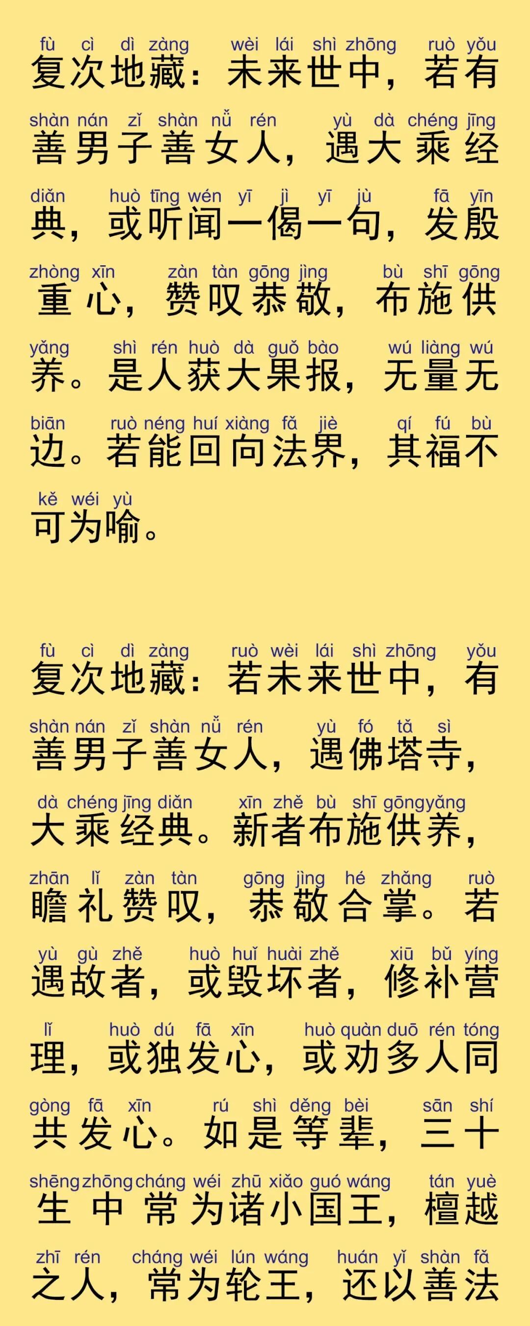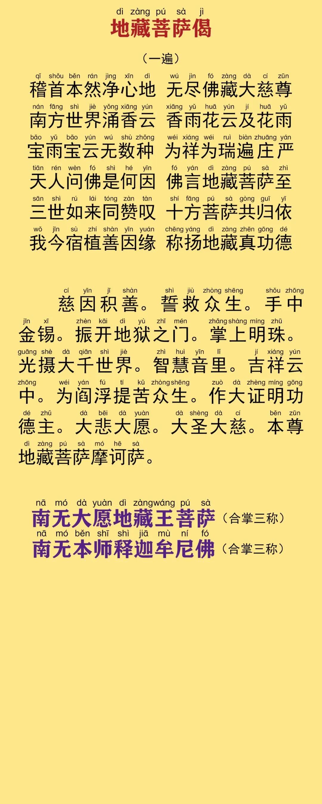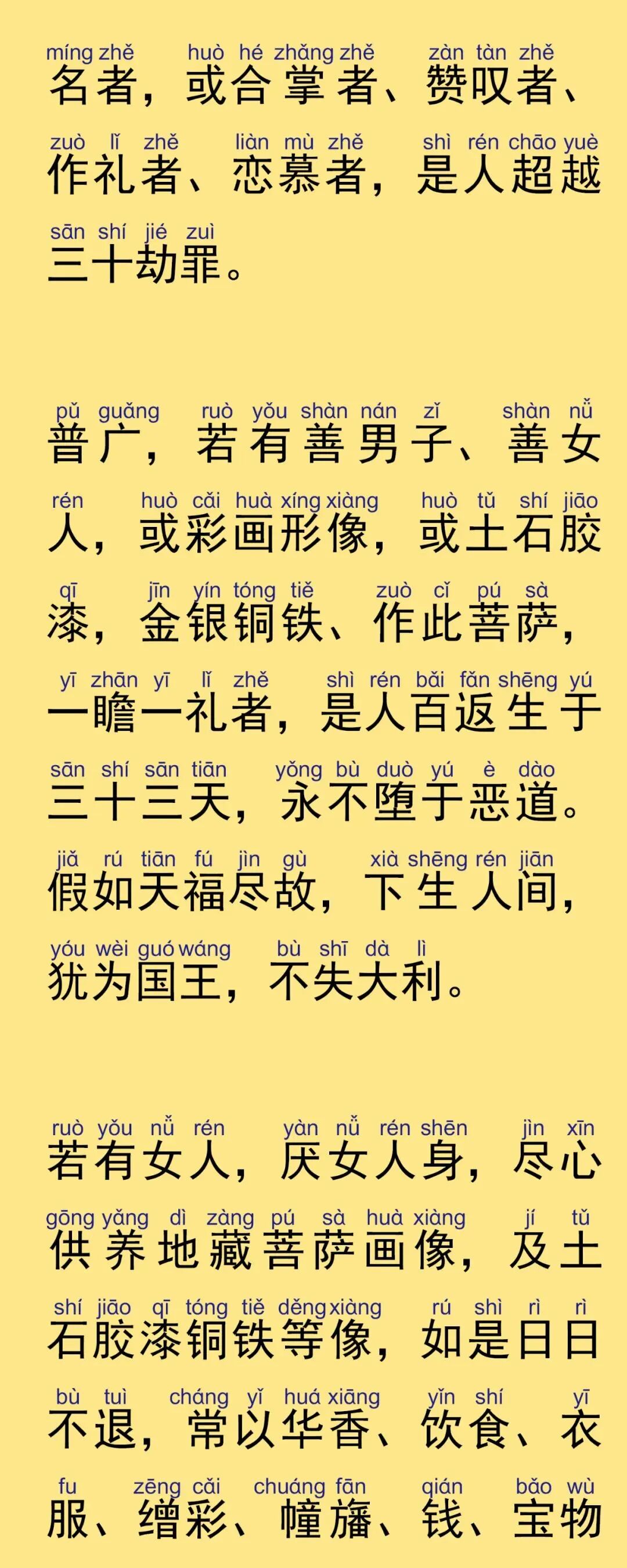 《地藏经》又名《地藏菩萨本愿经》功德利益: