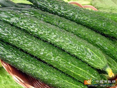 黄瓜是餐桌上的平民蔬菜,以其营养、价廉大受青睐,尤其是女性朋友。黄瓜果肉脆甜多汁,清香可口,它含有胶质、果酸和生物活性酶,可促进机体代谢,能治疗晒伤、雀斑和皮肤过敏。黄瓜还能清热利尿、预防便秘。新鲜黄瓜中含有的丙醇二酸,能有效地抑制糖类物质转化为脂肪,因此,常吃黄瓜对减肥和预防冠心病有很大的好处。