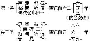 然除去西洋近人之说,专就此二系之说之本身考之,则殊觉第一系之价值高出于第二系之上。加以关于华文翻译史之旁证,多与第二系说冲突,而采用第一系说则可得符顺。故在中国、日本等,皆应采用笫一系说。且采用第一系说,则与锡兰及西藏之佛教纪元皆可一致,尤易成为世界统一之佛教纪元。故今再将第一系说之确实性申言之。